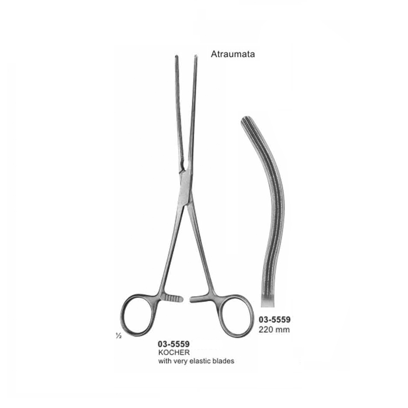 Kocher Intestinal Curved Clamp Atraumata Soft Elastic 220 mm